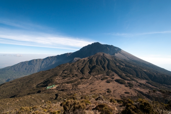 Mount Meru’s distinct appearance was formed around 250 000 years ago by a tremendous volcanic eruption that destroyed the entire eastern flank, leaving a horseshoe shaped crater. Not only does Mount Meru boast impressive views and diverse vegetation, it also gives you the chance to see some wildlife in the form of a walking safari. On your trek you might come across large game such as giraffes, buffaloes, baboons, elephants, antelopes and Colobus monkeys. As the vegetation changes from dense mountain rainforest into heather and moorland and finally alpine desert, the frequency of animals you will see becomes scarcer, shifting your focus from animals to landscape. You will be accompanied by an armed park ranger on your tour.